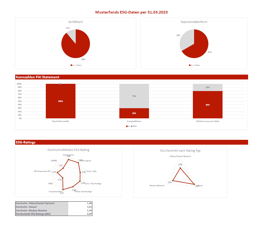- manage, analyse and evaluate ESG relevant information with the commercial key figures at a property and portfolio level